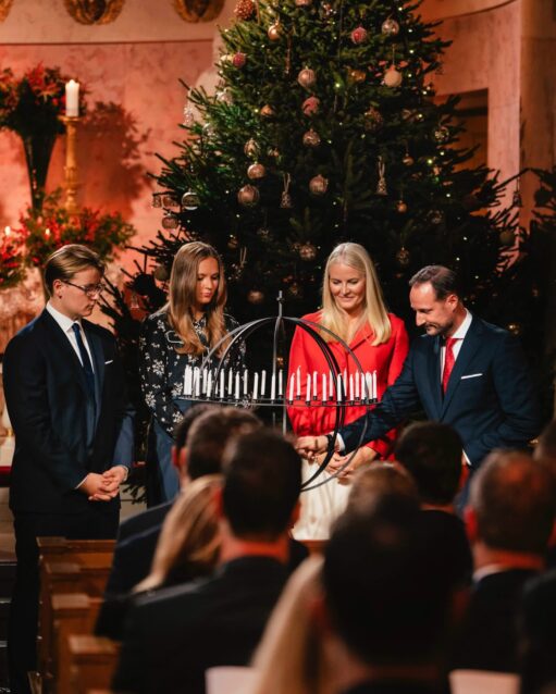 Cp haakon and CP mette marit with their children at the pre-Christmas gathering at the Palace Chapel for guests from the emergency services