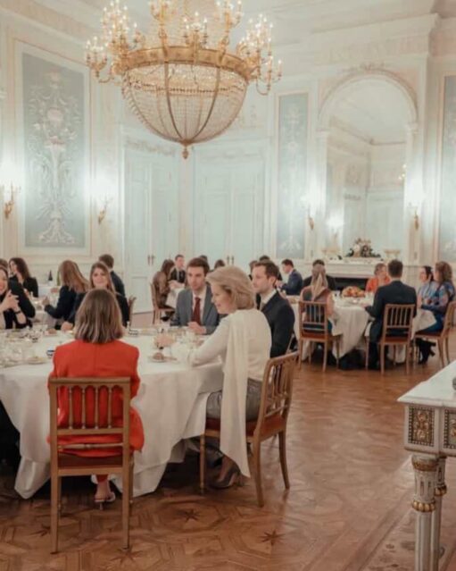The king and Queen Mathilde at Dinner with young journalists at Laeken Castle