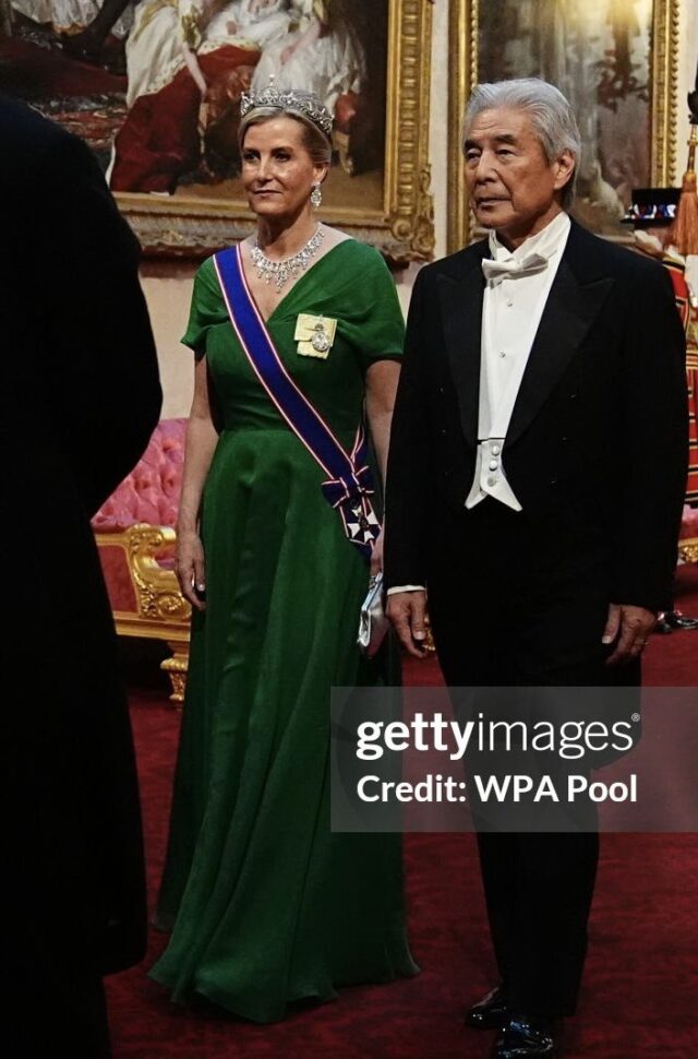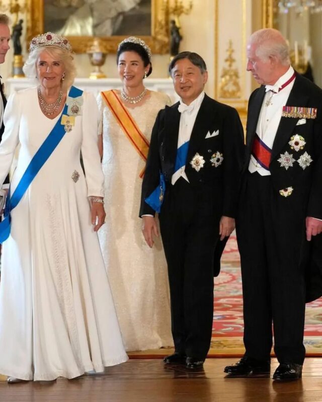 25 June 2024 Emperor Naruhito & Empress Masako of Japan Visit to the UK – dinner British Royals, Royal News 1 Comment 1 Comment on Emperor Naruhito & Empress Masako of Japan Visit to the UK – dinner L’Empress is very elegant, beautiful evening gown. Camilla likes to decorate herself with Queen Elizabeth’s precious jewels – but it’s too much. Overdone. Reply Leave a Reply Cancel replyYour email address will not be published. Required fields are marked *Comment * Name * Email * Website Save my name, email, and website in this browser for the next time I comment. Δ This site uses Akismet to reduce spam. Learn how your comment data is processed.